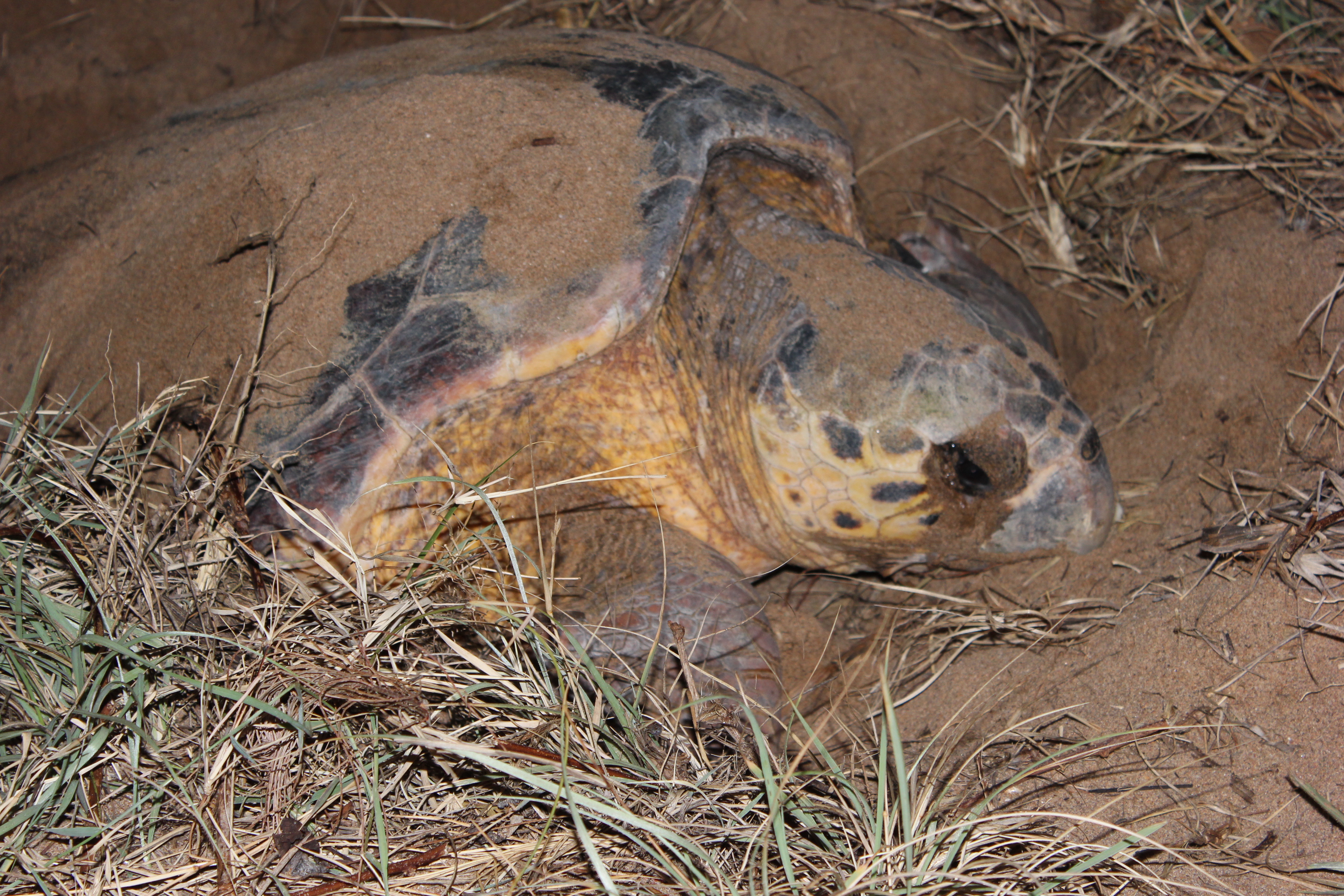 Leaving 1770 we headed to Bargara (near Bundaberg) as we wanted to visit to see the sea turtles lay their eggs on the beach at Mon Repos, which is one of the only beaches in Qld where this happens during this part of the year. What a spectacle of viewing mother nature in action, the female turtles come in at night and beach themselves, they then dig the egg chamber, lay their eggs, back fill the chamber then head back into the sea where they will never see their baby turtles again. The odds are against these turtles from the minute they are born as only 1 in 1000 turtles survive till adulthood.The Turtle rookery at Mon Repos is run by the local National Park Rangers and the local sea turtle research centre, it is extremely well run to ensure there is no disruption to the turtles during this delicate procedure every evening. It was quite a long wait and a late night as you to wait till the turtles come in at night to lay their eggs, well worth the wait and the experience is just magical! We were very surprised to learn that these loggerhead sea turtles live a very lonely life, from the minute they are born they live entirely independent and don’t associate with any other turtles all their life apart from when they mate. Also, the turtle we saw was not previously tagged, which meant this was its first time it has laid eggs, which also meant this would have been its first time it has been back to land (the beach) in 25 or 30 years as that’s how old they are before they are mature enough to mate. Other than when they lay eggs they live totally at sea, what an amazing creature and we felt so special to be able to witness this first hand..
