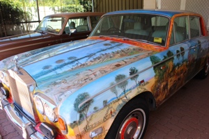 Kilometres but felt 30 kilometres yesterday in broken hill we went to Pro Hart museum and met his wife on the way out, pro had 3 rolls royces and 1 Bentley ( real cars) then we went to bells cafe it was retro style, later we went to the living desert sculptures and we had steak for dinner